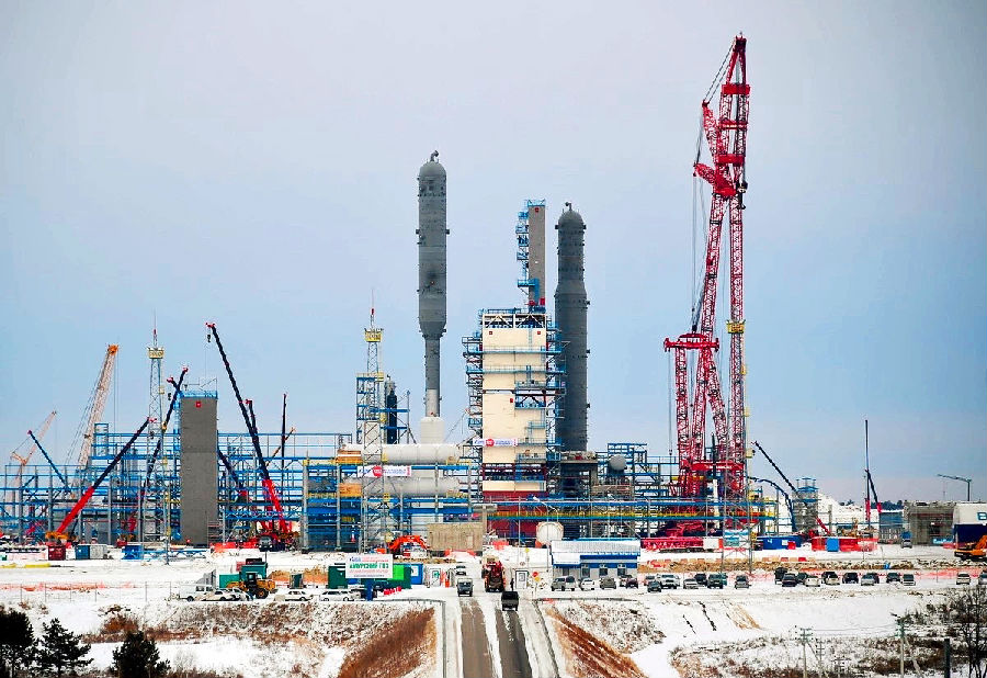 該項(xiàng)目位于俄羅斯阿穆爾州斯沃博德內(nèi)區(qū),距離中國黑河約200公里,是中俄第二條大型能源走廊——中俄天然氣管道東線的源頭,投產(chǎn)后年原料氣處理能力達(dá)420億立方米,每年可向中國輸送天然氣380億立方米。